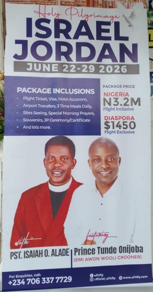 Expressing his readiness to lead the intending pilgrims in conjunction with U-fitfly, Pastor Alade noted that visiting Israel and Jordan would renew the spiritual lives of participants as they pray and reflect at sites mentioned in the Holy Bible.