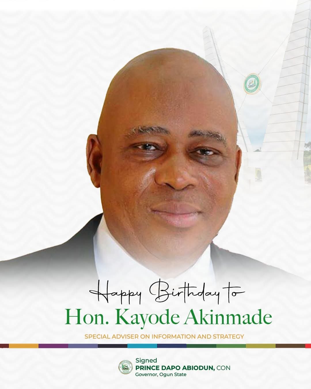 Ogun State Governor, Prince Dapo Abiodun, has celebrated the Special Adviser on Information and Strategy, Hon. Kayode Akinmade, as he marks another year of life, service and impact.