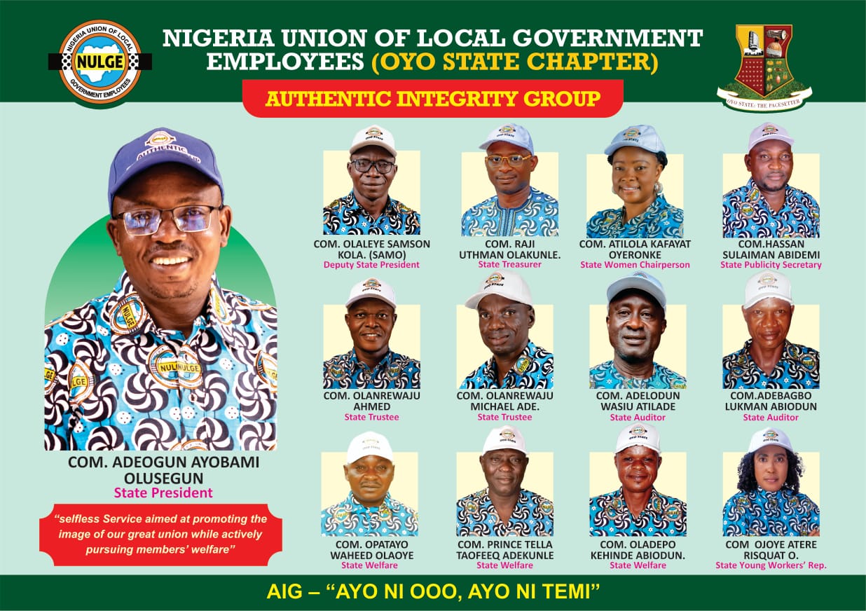 In preparation for the upcoming Oyo State Delegates Conference of the Nigeria Union of Local Government Employees (NULGE), the Authentic Integrity Group (AIG) has formally announced its lineup of candidates for various state executive positions.