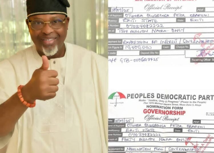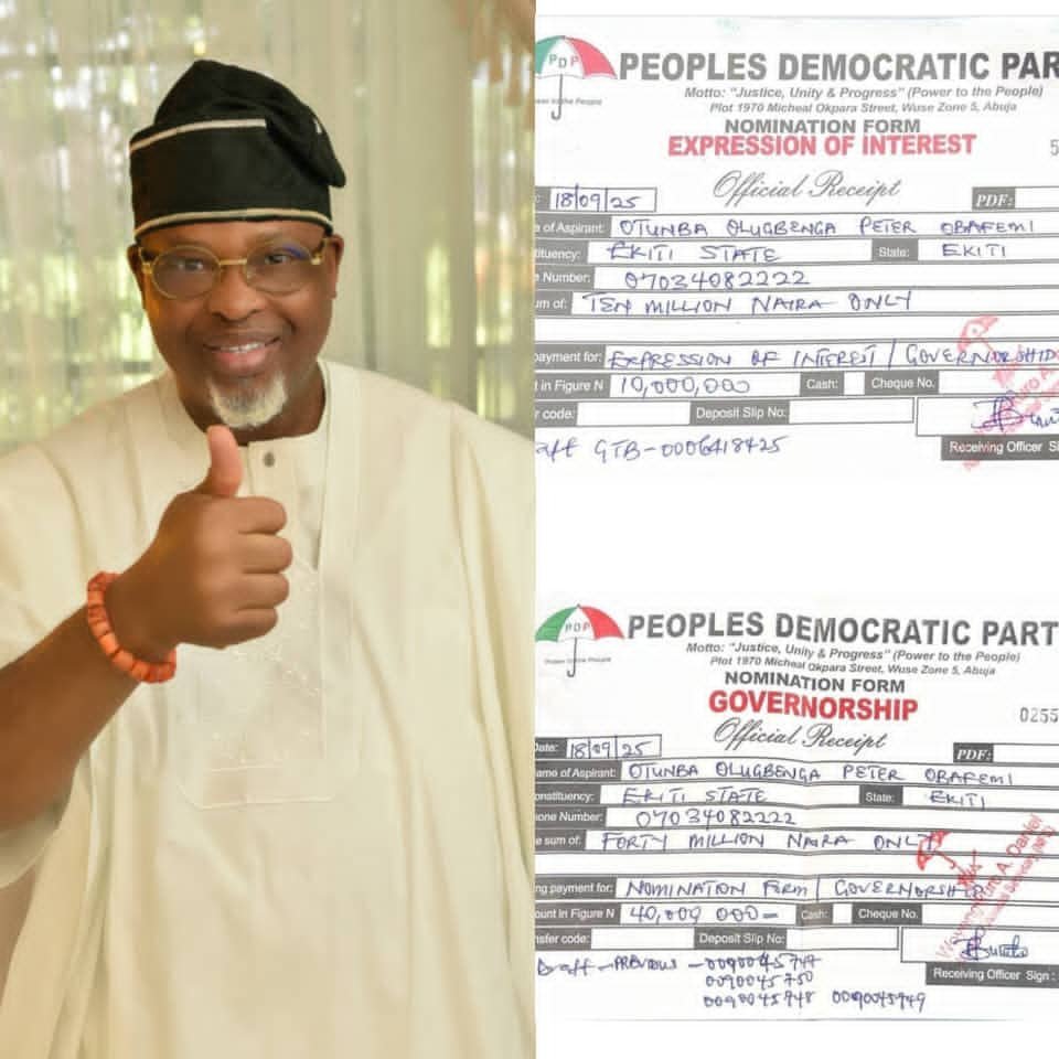 Otunba Dr. Peter Olugbenga Obafemi, a distinguished businessman, aviation mogul, and philanthropist, on Thursday picked the Peoples Democratic Party (PDP) Governorship and Expression of Interest forms in Abuja, officially joining the race for the 2026 governorship election in Ekiti State.