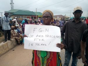 Hundreds of residents gathered at Taki Square with carrying placards and banners with various inscriptions such as “ FG Complete our road” “ 35 mins Journey now 2 hours “ ogbomoso-Oyo road is our book haram”” Stop the killings fix our road” “ We are not animals we deserve better roads’ Complete 18 year projects” and many others