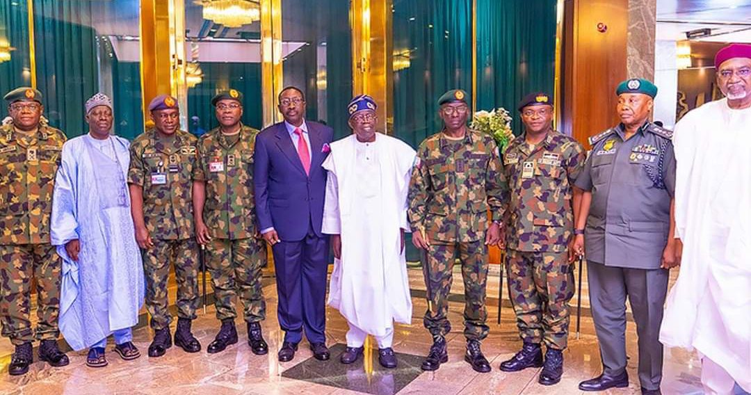 President Bola Tinubu on Thursday met with the service chiefs at the State House in Abuja.