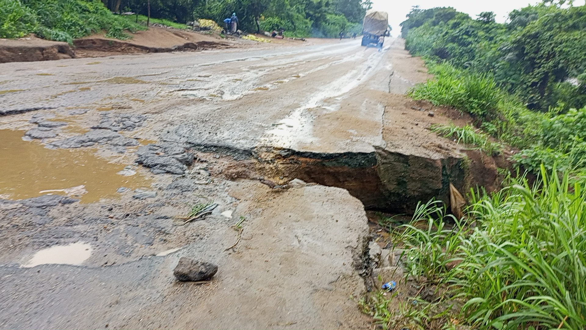 Some damaged portion of the road have bene fixed by FERMA but the recent flooding experience has further damaged the road