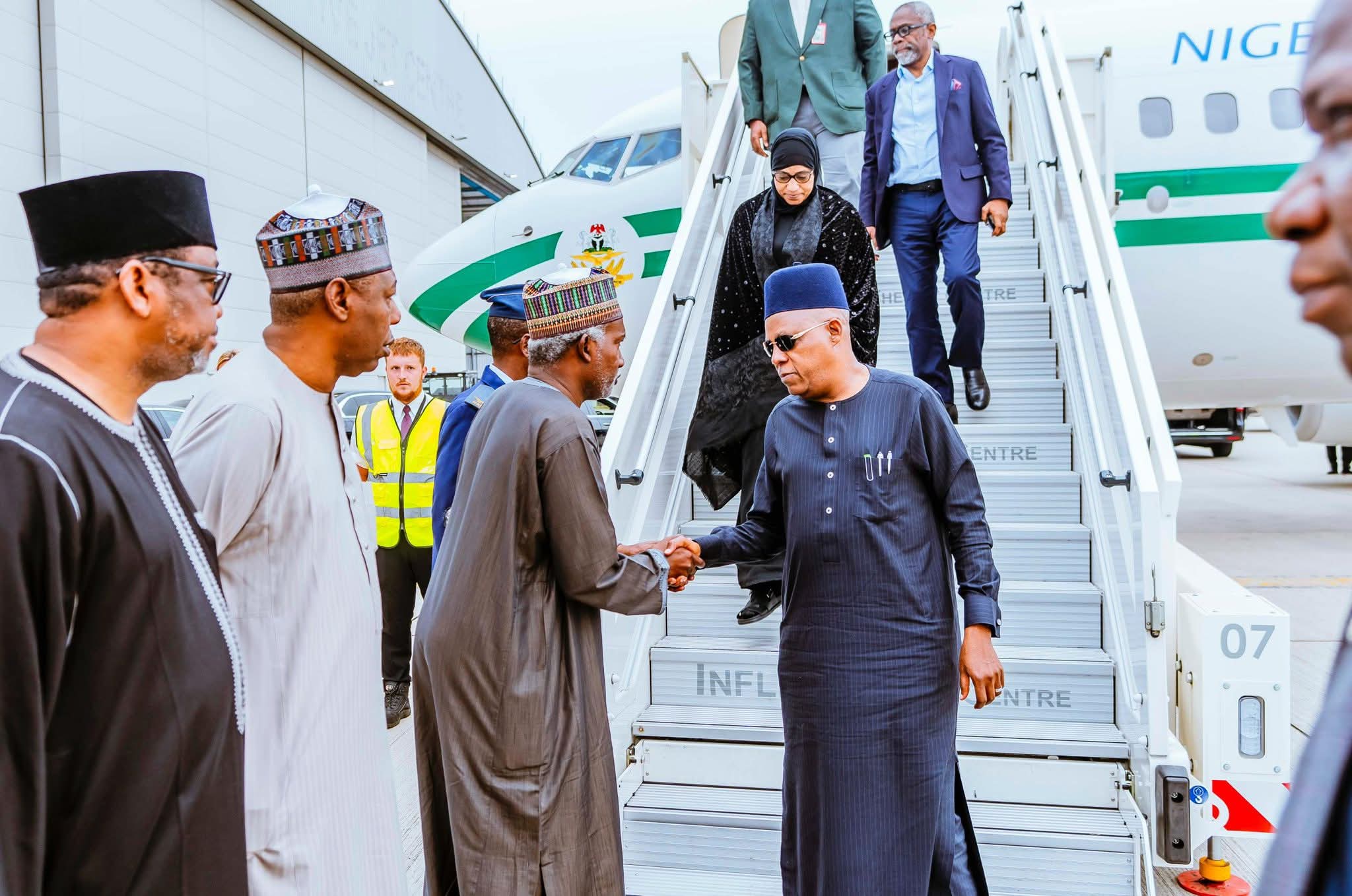 Vice President Kashim Shettima arrived in London early Monday morning following the death of former President Muhammadu Buhari.