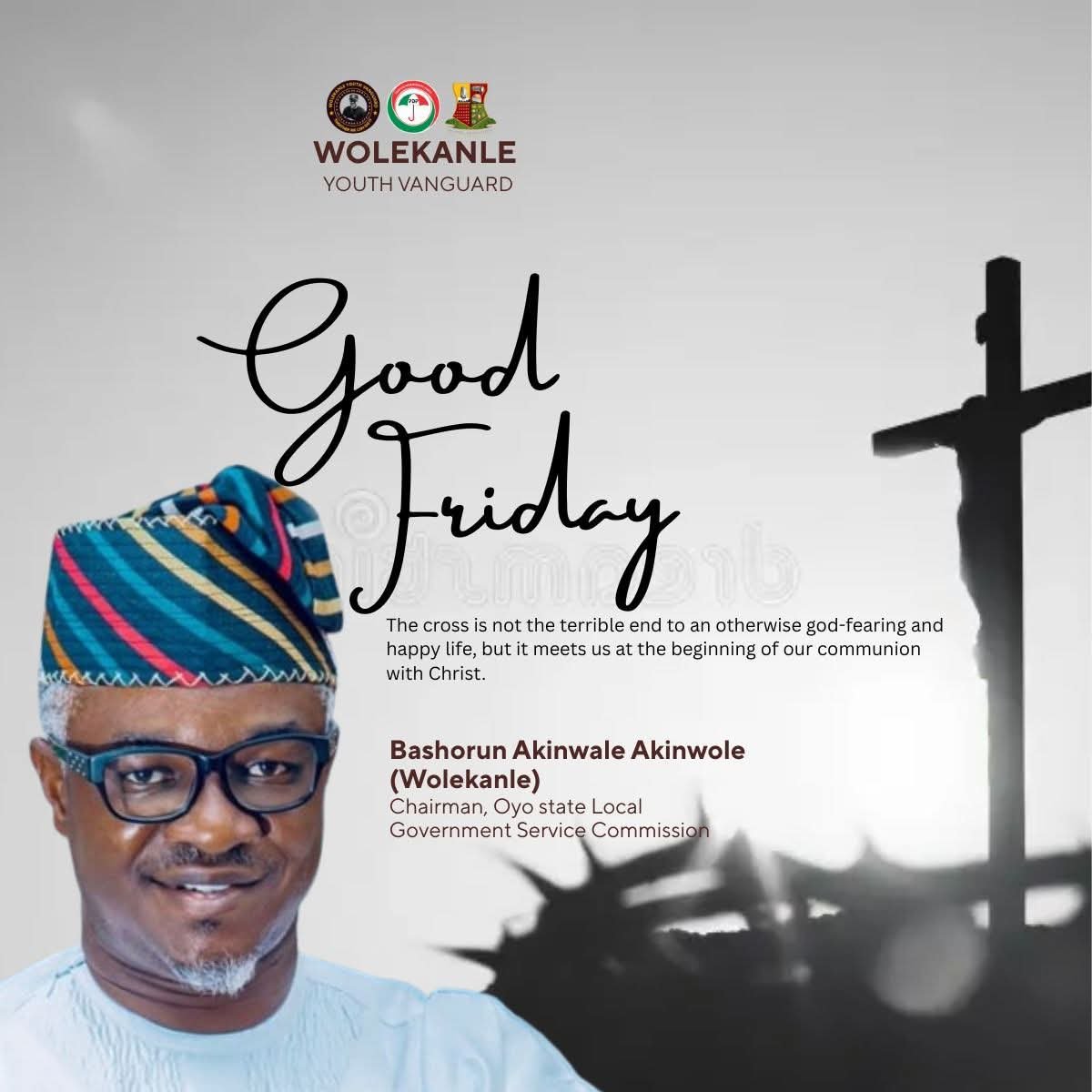 The Chairman of the Oyo State Local Government Service Commission, Bashorun Akinwale Akinwole, has called on Nigerians to embrace the virtues of sacrifice, humility, and love exemplified during the Lenten season as Christians across the country celebrate Easter.